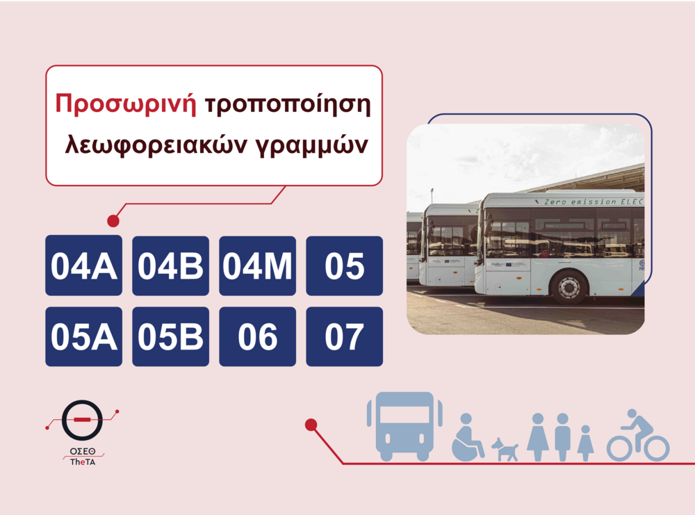 Ενημέρωση για προσωρινή τροποποίηση λεωφορειακών γραμμών 04Α, 04Β, 04Μ, 05, 05Α, 05Β, 06, 07