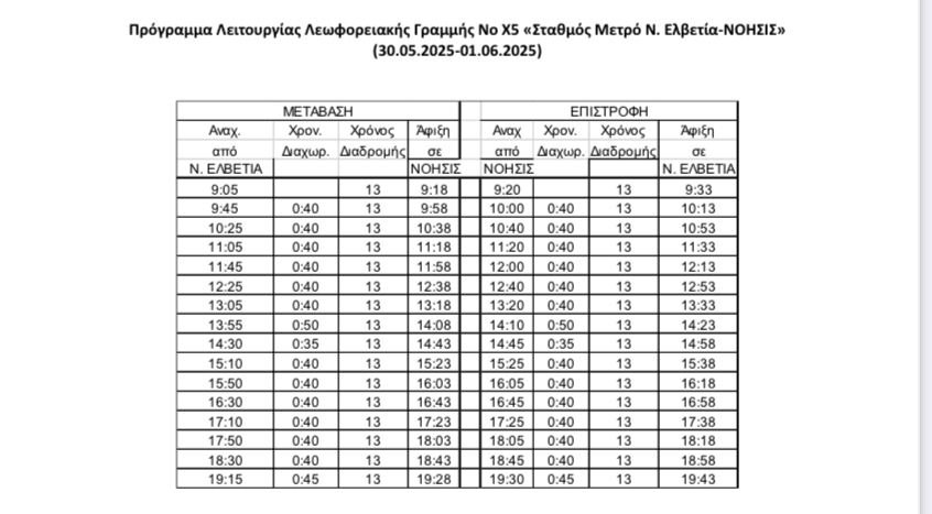 Προσωρινή νέα λεωφορειακή γραμμή Νο Χ5 «Σταθμός Μετρό Ν. Ελβετία-ΝΟΗΣΙΣ»